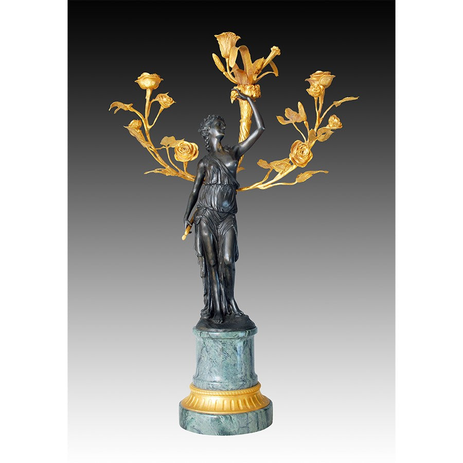 Pair of Lady Candelabra with Bronze, Gilt and Marble