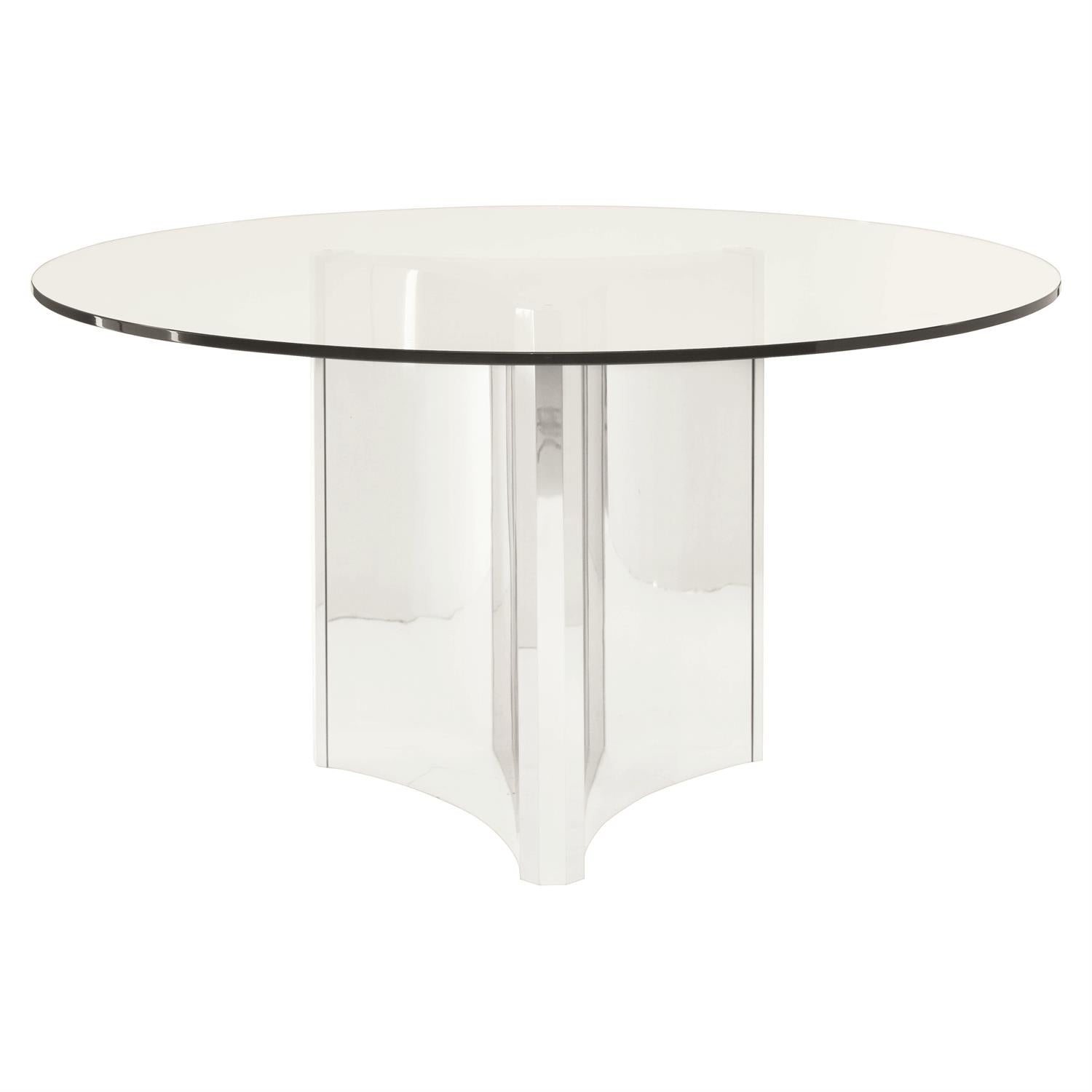 Modern and glamorous, this unique dining table features a sculptural steel pedestal in a gleaming stainless steel finish. PIECES SHOWN: 353770 Abbott Dining Table Base