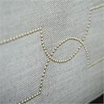 Upholstered footboard and rails with welt and decorative nailhead pattern