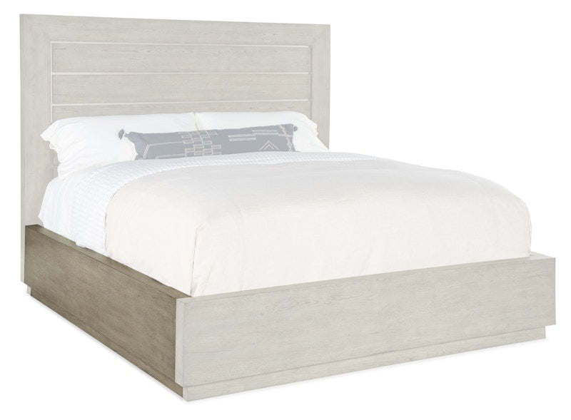 Capturing the essence of nature’s organic color palette with antique pewter metal accents in the headboard, the striking modern silhouette of the Mill Ridge King Panel Bed is crafted of Oak Veneers and finished in the soft smoked gray Mink color. Includes headboard, footboard and rails. Headboard can be used alone. Capturing the essence of nature’s organic color palette and the aura of a rustic mountain cottage, Hooker Furniture introduces the Linville Falls collection. The whole home collection is designed for younger consumers looking for casual and contemporary furniture. Characterized by its rustic, weathered finish and clean lines paired with organic grain patterns, Linville Falls is constructed with split oak solids and veneers and has an overall organic aesthetic. It is featured in a soft Smoked Gray finish mixed with a Charred Black finish that is achieved through Shou Sugi Ban, a Japanese technique that creates an elegant burnt wood look. Its moderate scaling and fresh silhouettes offer a refreshing juxtaposition mixing old with new.