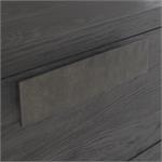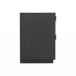 Straightforward lines complete a strong shape on this nightstand, defined by bold cast aluminum hardware and a dark finish. Ebonized Pine finish with two drawers and plinth base