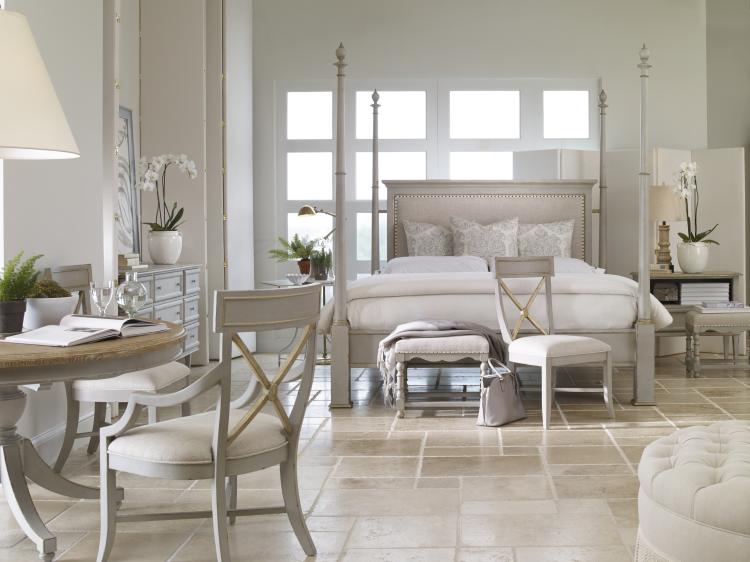 NOTE: AVAILABLE ONLY AS SHOWNWorn light grey paint finish with Gold leaf highlights on Acacia solids and rustic Tram veneerSingle drawer below open storage