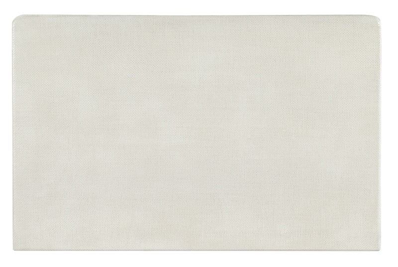 Inspired by casual waterfront living with a chic sophistication, the Serenity Nightstand is crafted of Wood and Raffia and finished in Sand Dollar, a white lacquered grasscloth. Chow-style legs and light champagne-colored decorative bar pulls add a designer touch. The two drawers have soft-close drawer guides, and there’s one open area above the drawers. There’s a USB charger with two ports and a cord clip on the back. Designed to create a comfortable and inviting retreat within the home, the Serenity collection is defined by its casual finishes and variety of organic textures and materials that combine to deliver a relaxed aesthetic. Inspired by casual, waterfront living, the collection was designed to bring the relaxed aura of the outside in -- no matter where the consumer lives. White oak veneer delivers two key finishes – a whitewashed look and a weathered gray – and is accented with shades of soft coastal blue, sand blasted pine and soft white bronze metal details. Organic materials including abaca rope, natural stone, painted grass cloth, louvered details, and faux coral motifs add to its casual style. The collection’s silhouettes were designed to reflect three distinct personalities – a traditional nature with serpentine shaped case pieces and a softer aesthetic, a modern persona with linear shapes and coral accents, as well as a more casual contemporary character with soft-edged case pieces and organic surfaces.