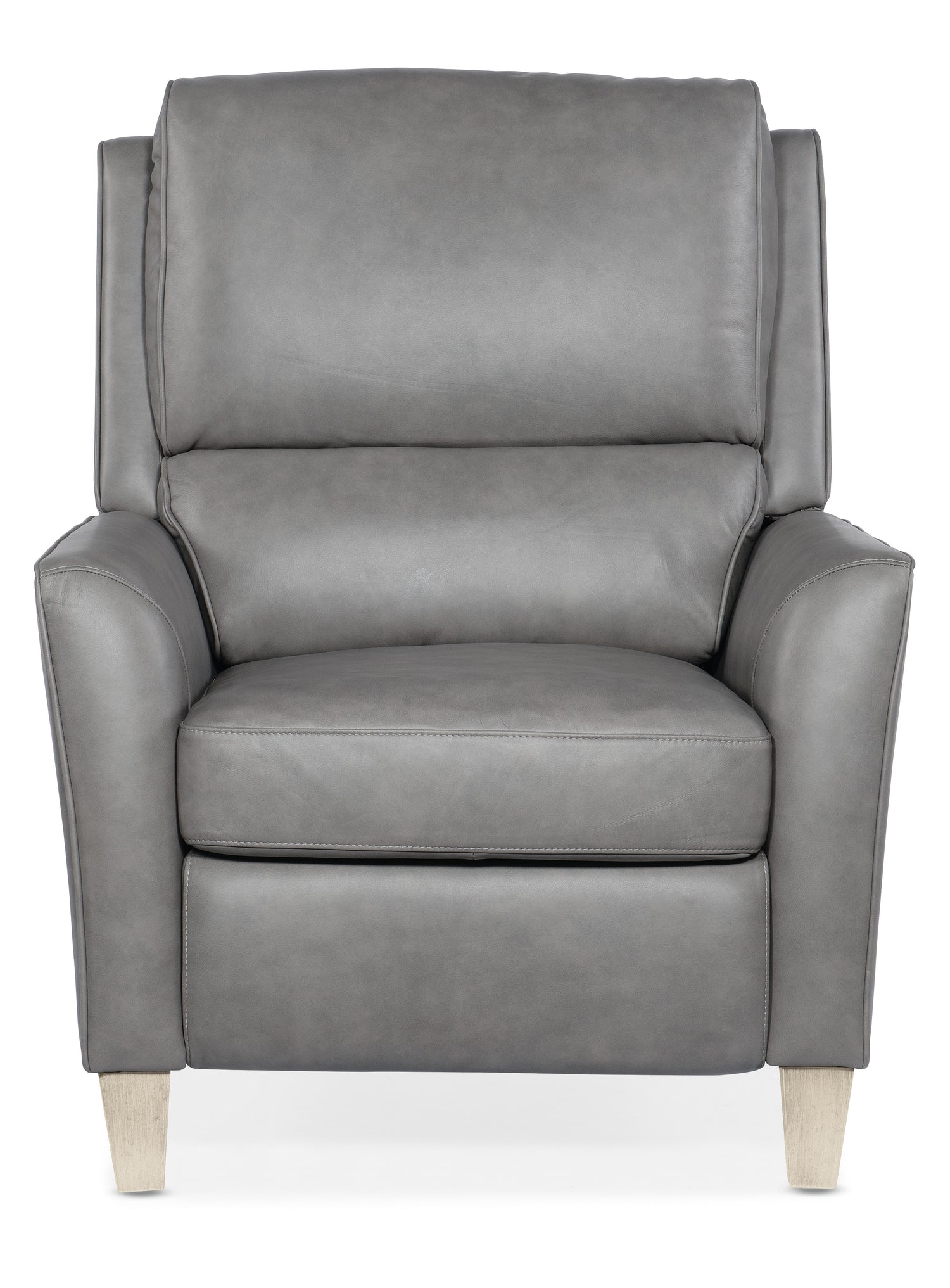 In a light and airy leather-and-finish combination, the Dunes Power Recliner with Power Headrest is as relaxing as an ocean breeze. The stylish silhouette features tapered wood feet in a white finish, a bustle style back and flared arms, covered in the quality semi-aniline top grain Aline Light Gray leather. Includes USB port to charge your device while you relax. Hooker Furniture Upholstery is a designer-inspired collection of upscale leather seating that includes versatile reclining chairs, modern-day reclining sofas, eclectic club and artisan accent chairs, as well as a selection of executive desk chairs for the home. Designed and curated to appeal to a variety of style tastes, each piece from Hooker Furniture Upholstery is meticulously crafted in a unique selection of textures and hues.
