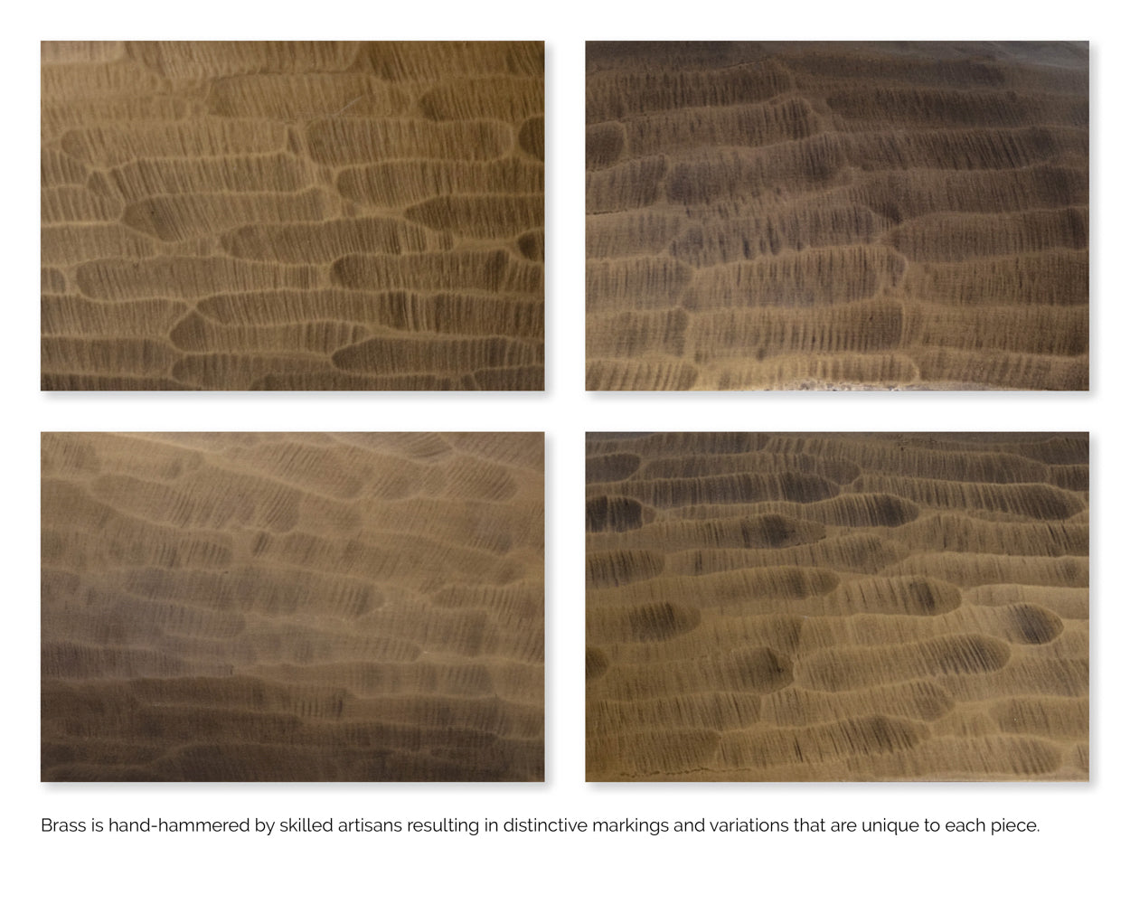 The Zanatta Dining Armchair is all about the subtle details. The hammered metal detailing in the antique brass curved frame provides visual interest that will stand out in any dining space. A charcoal black leather seat completes the look. Handle with Care: This design has been crafted with 100% leather. Leather is a natural material; as such, colour variations, markings, wrinkles, grooves and light scratches are acceptable and appreciated characteristics. No two pieces are alike. Visit our Product Care page for more information on how to ensure the lasting beauty of this piece. Made in India. With refined craftsmanship, this design was brought to life by skilled local artisans. Due to the nature of handcraftsmanship, unique imperfections such as fissures, markings and variations in colour and shape are welcomed and appreciated characteristics for a truly one-of-a-kind piece.