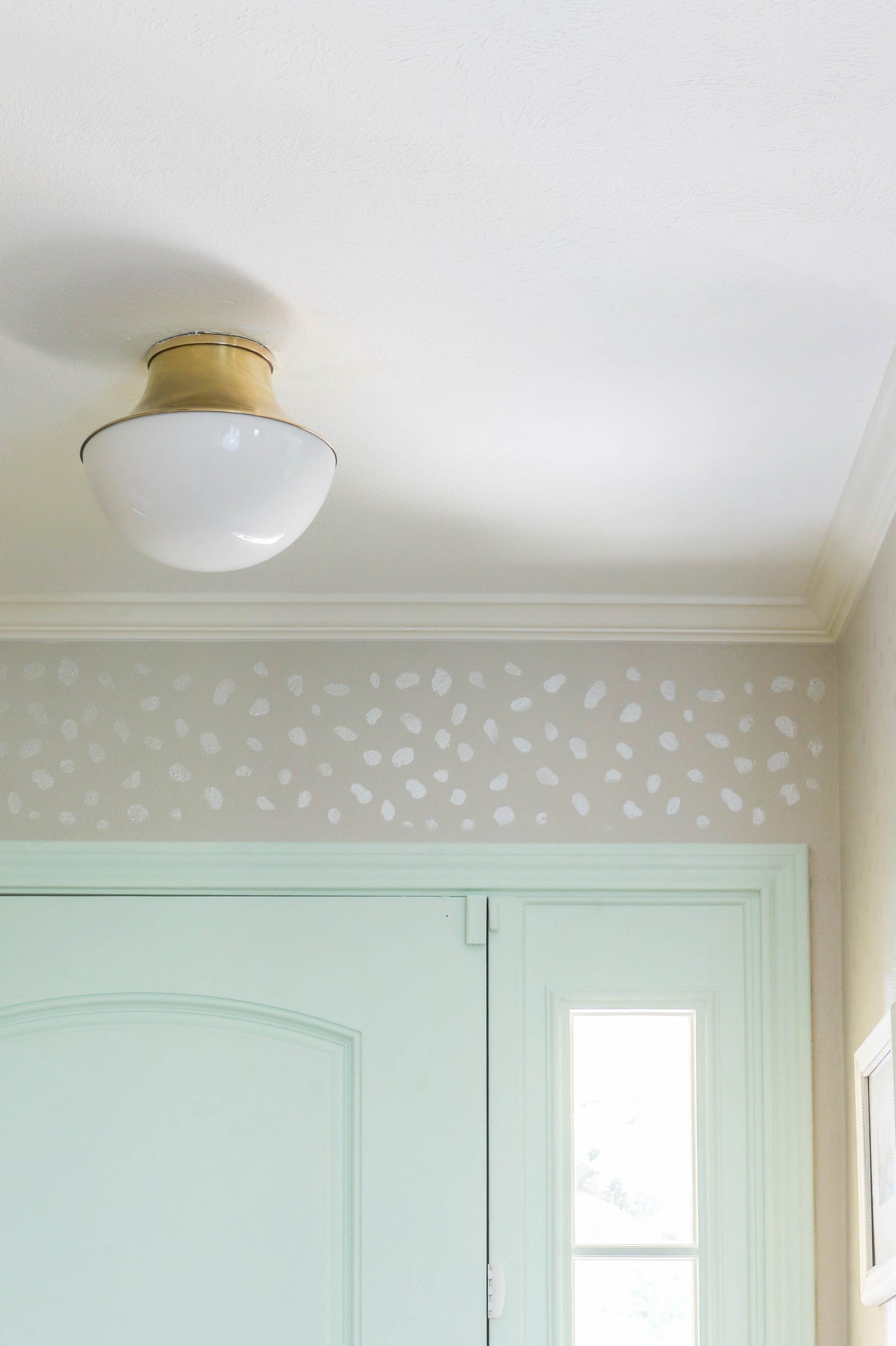 A demi-globe glass diffuser, clear on the inside, creates a stunning glow over any space. Spun metal swerves out in a funnel shape to meet the shade, making for an attractive silhouette.