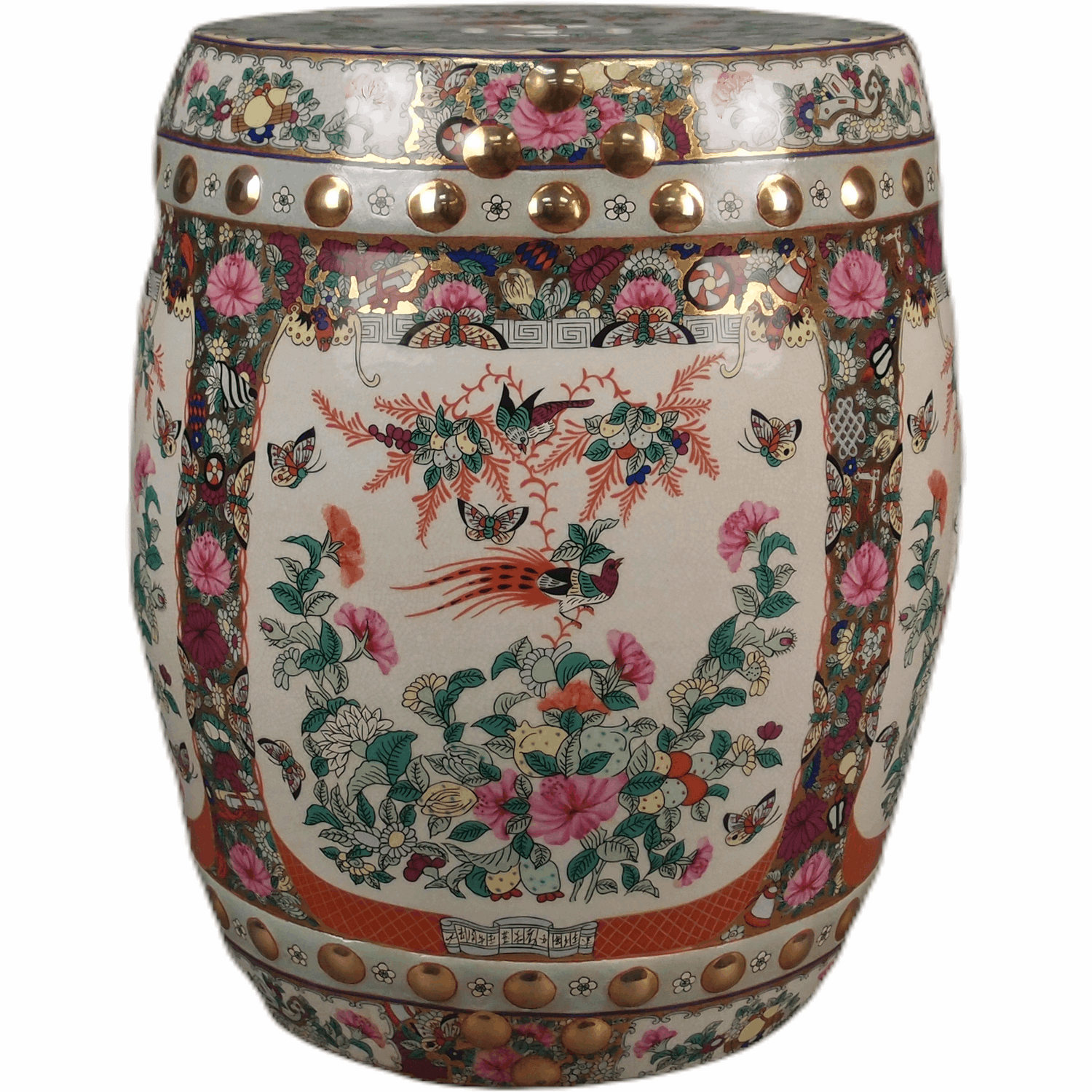 18” PORCELAIN GARDEN STOOL ROSE MEDALLION