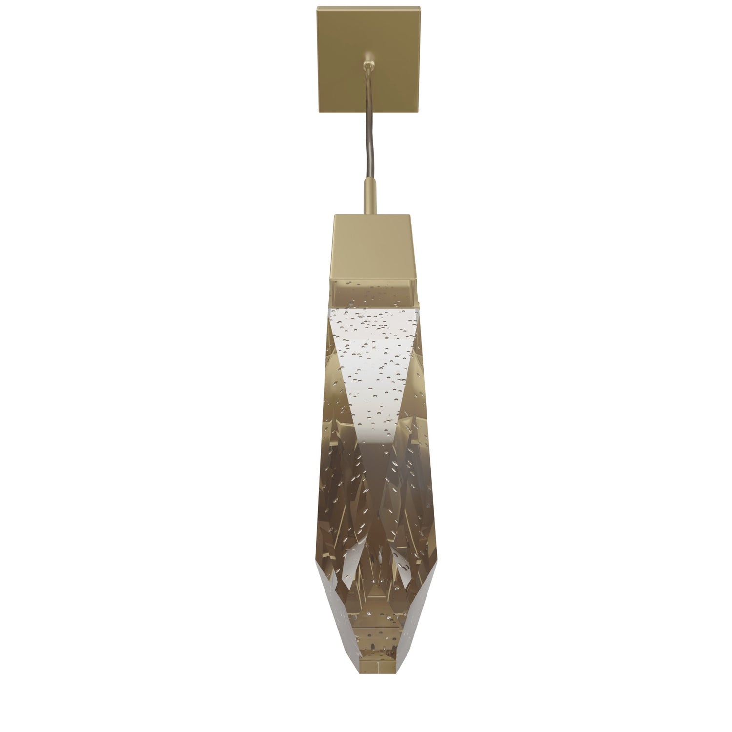 The pendant features a slender, icicle-inspired shape crafted from clear bubbled glass, suspended in a clean vertical drop for a refined and airy look