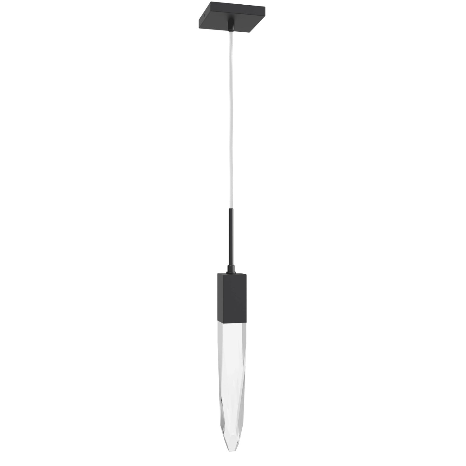 The pendant features a slender, icicle-inspired shape crafted from clear bubbled glass, suspended in a clean vertical drop for a refined and airy look