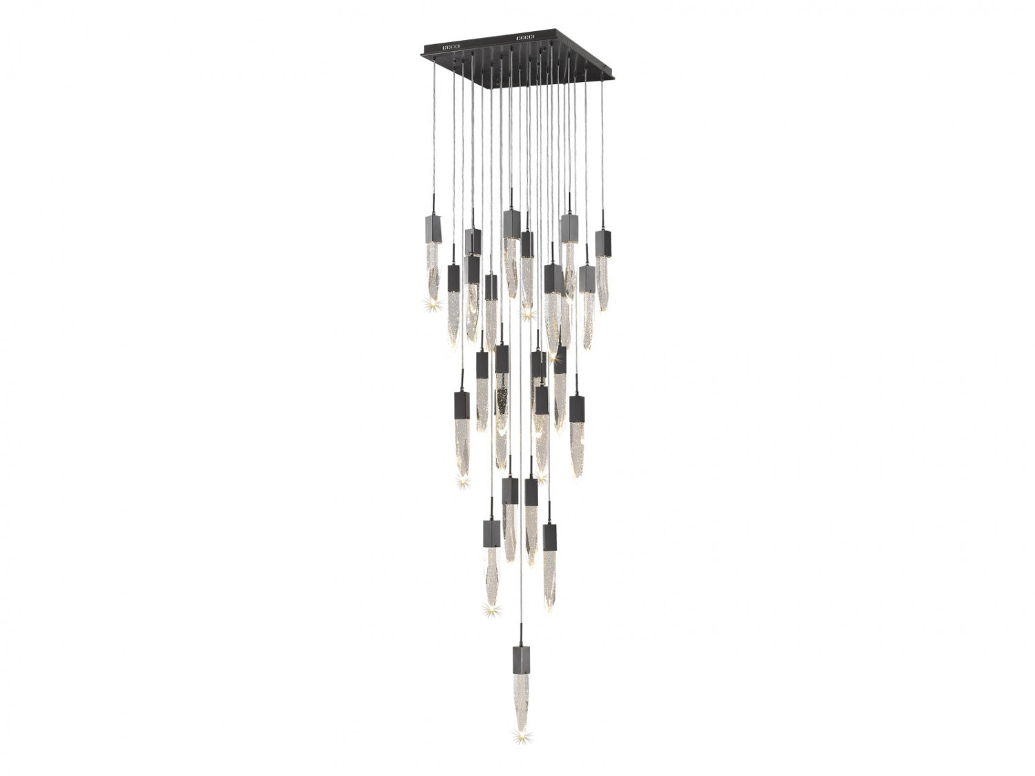 The Original Aspen Collection features hand-polished crystals, creating a stunning visual effect. This exquisite design brings a dramatic, modern flair to any space, elevating the atmosphere with its sophisticated, sculptural beauty.