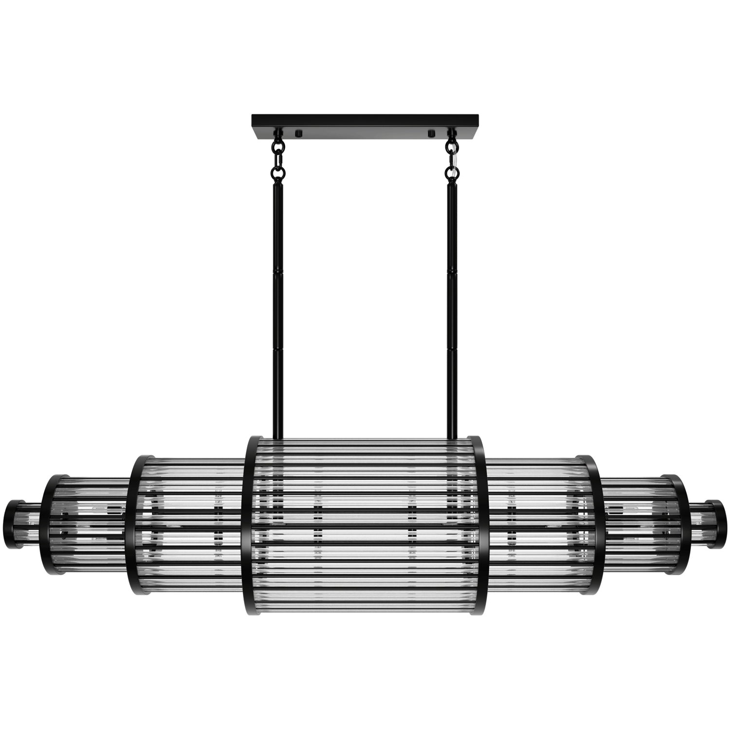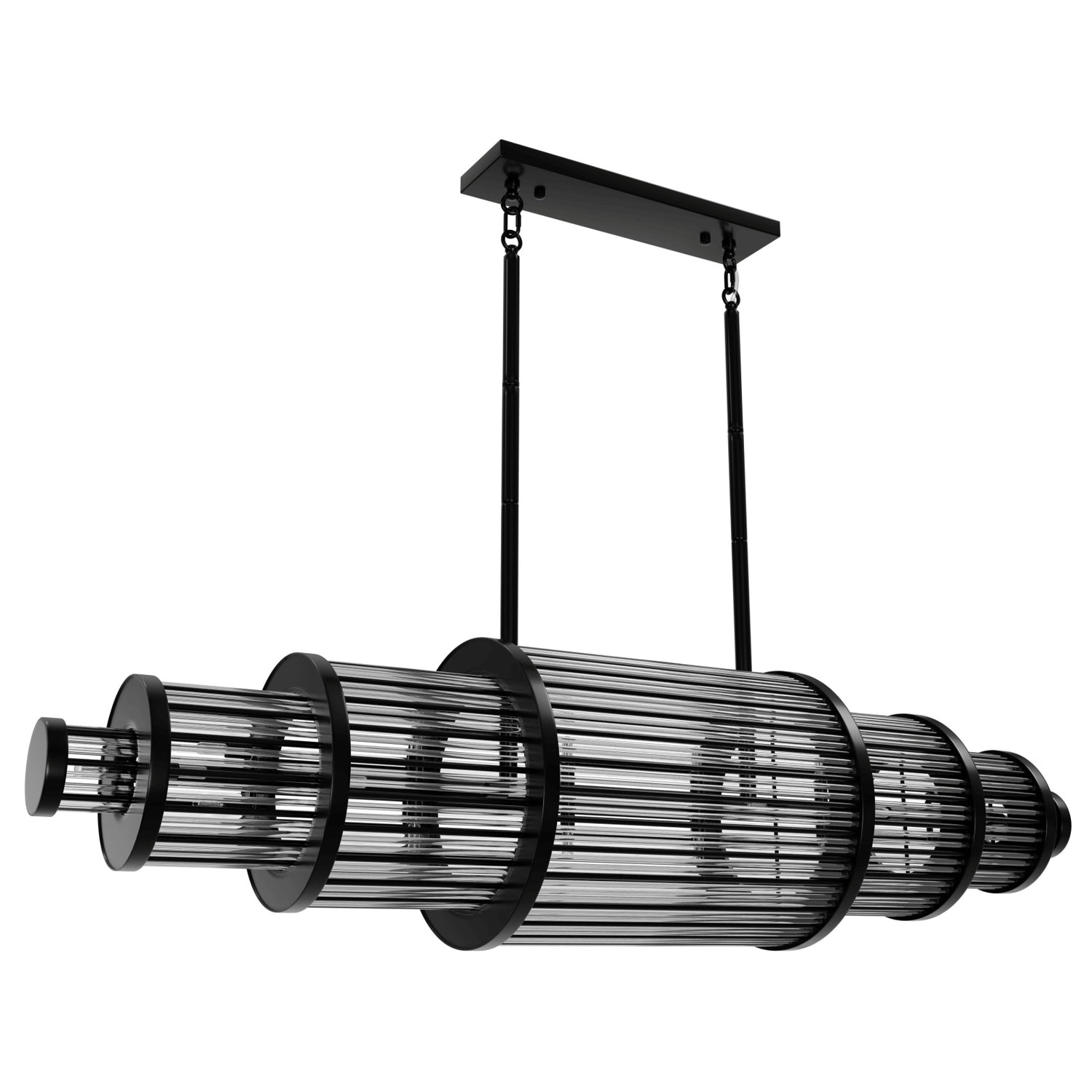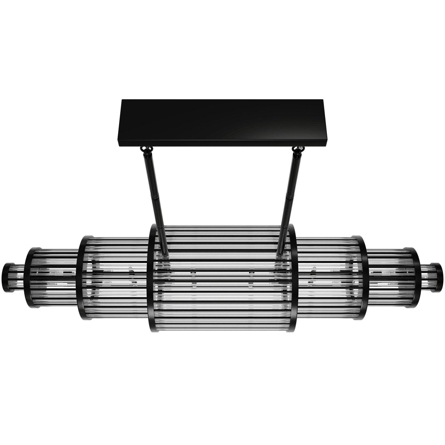 A lavish nod to the glitz and glamour of the roaring '20s: the art-deco-inspired frame of the Waldorf Collection is ringed with stunning crystal cylinders interspersed with modern metal columns.