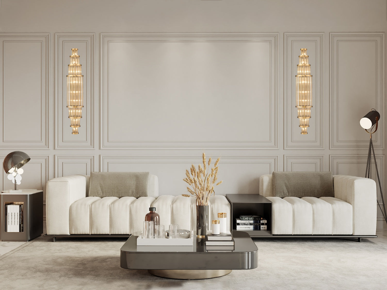 A lavish nod to the glitz and glamour of the roaring 20's: the art-deco inspired frame of the Waldorf Collection is ringed with stunning crystal cylinders interspersed with modern metal columns