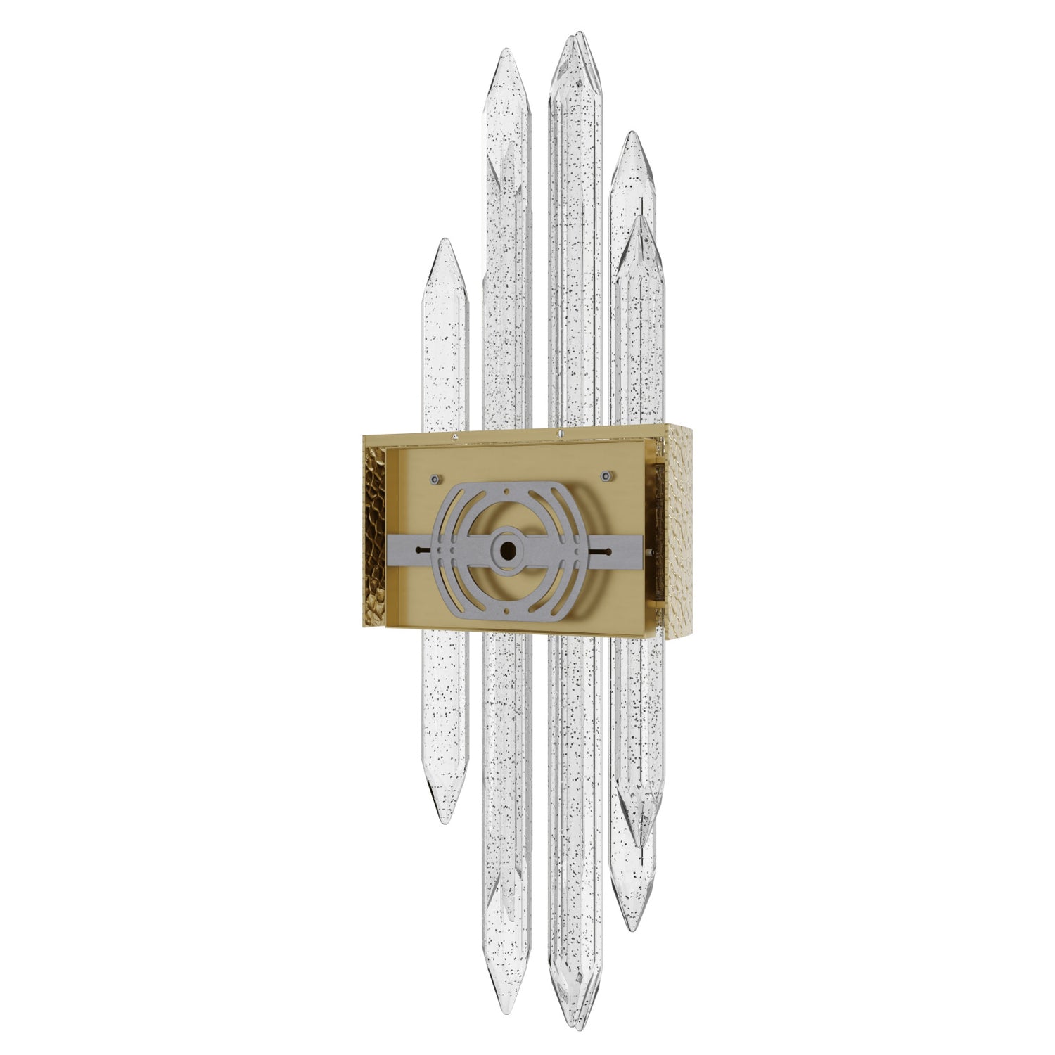 Fixture features a vertically elongated, pointed oval shape formed by layered crystal-like glass rods arranged symmetrically for a bold, faceted appearance