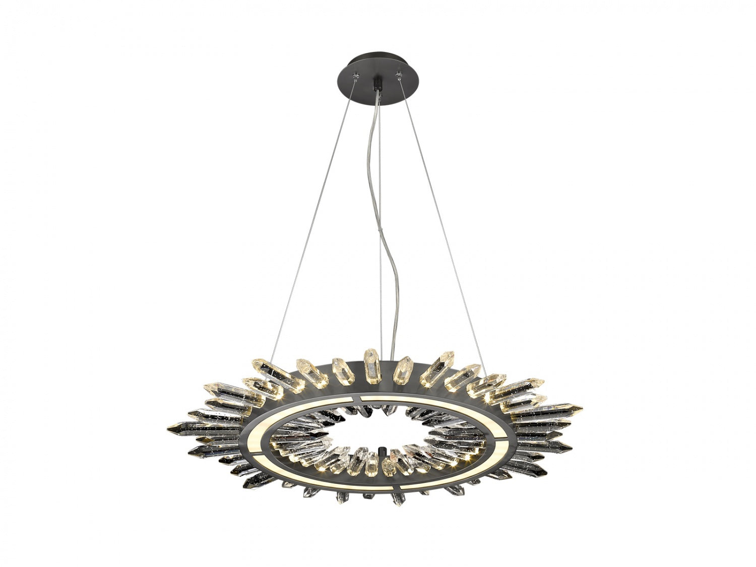 Fixture features a dramatic circular form with radiating crystal-like spikes, resembling a modern sunburst or crown€”offering dynamic symmetry and radiant elegance