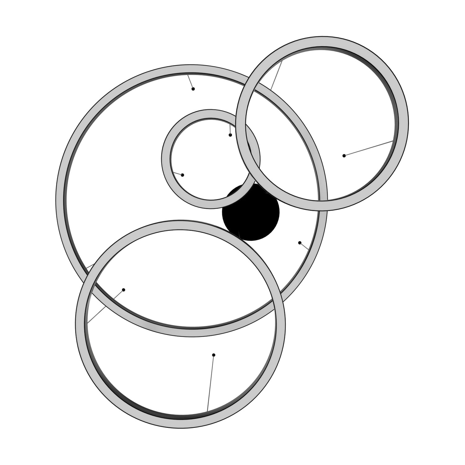 The clean circular forms, and gravity-defying layout make this fixture ideal for high-concept modern spaces