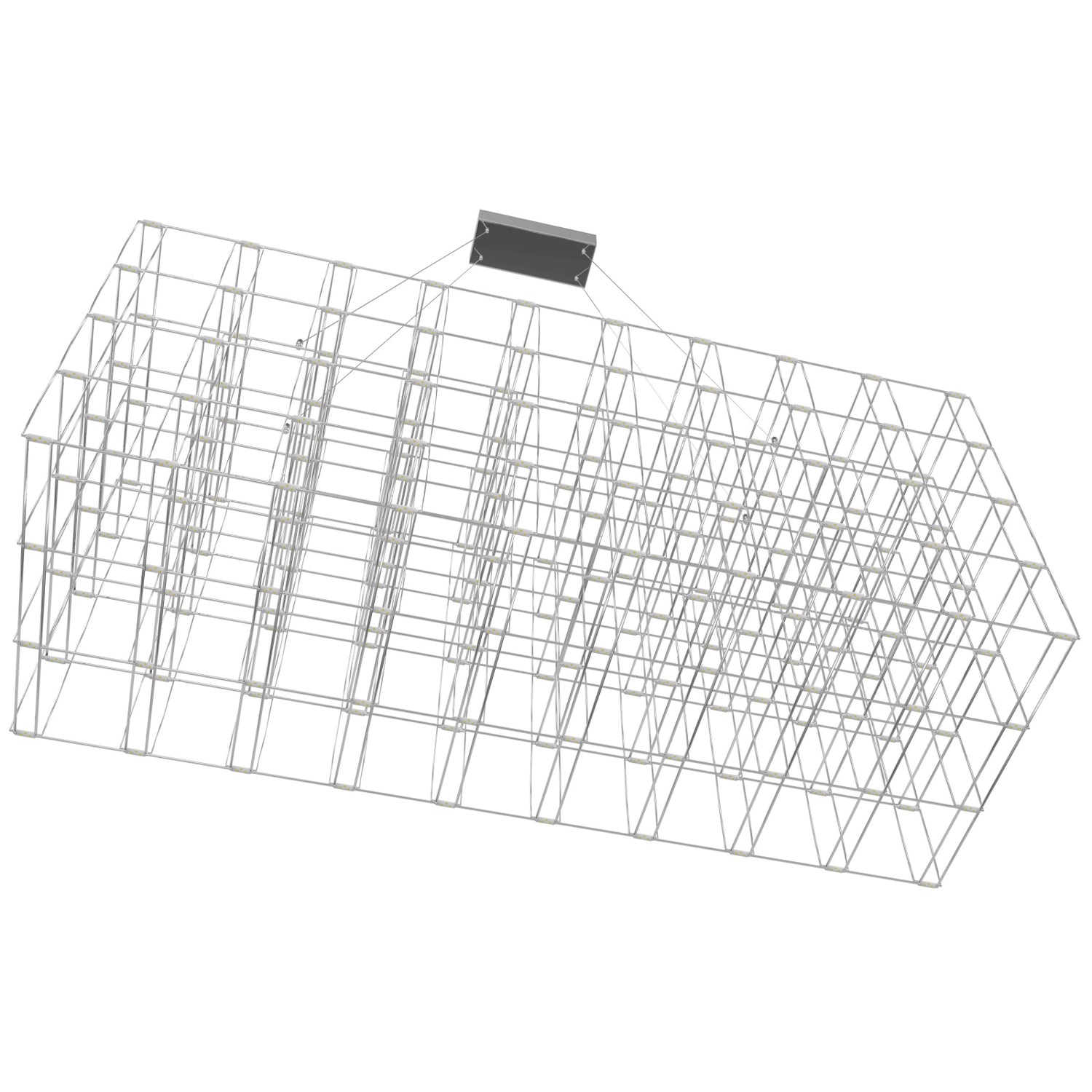 This fixture showcases a bold rectangular form made entirely of chrome-finished metal wires arranged in a perfect grid pattern€”creating a striking sense of structure and depth