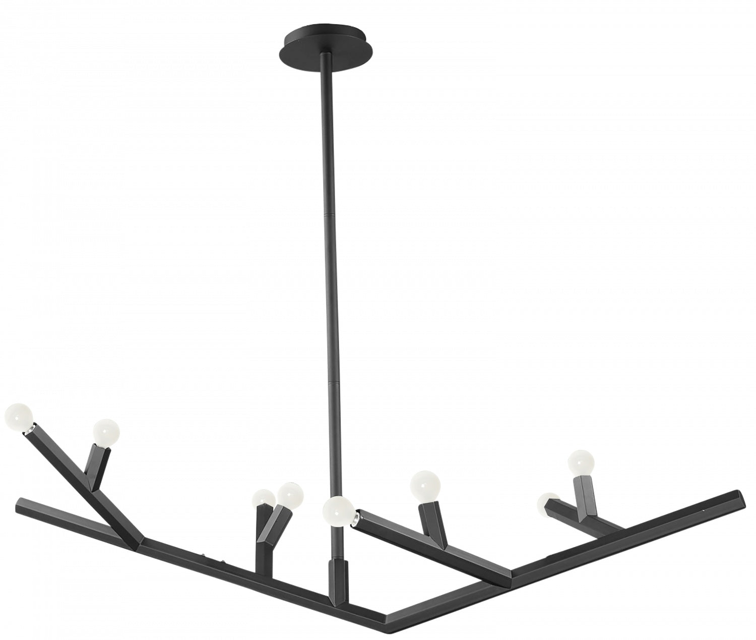 The Oaks Collection chandelier combines angular lines and branch-like shapes to create a striking, contemporary design. Its sleek, geometric styling brings a sense of casual sophistication, making it a bold yet elegant statement piece for any space.