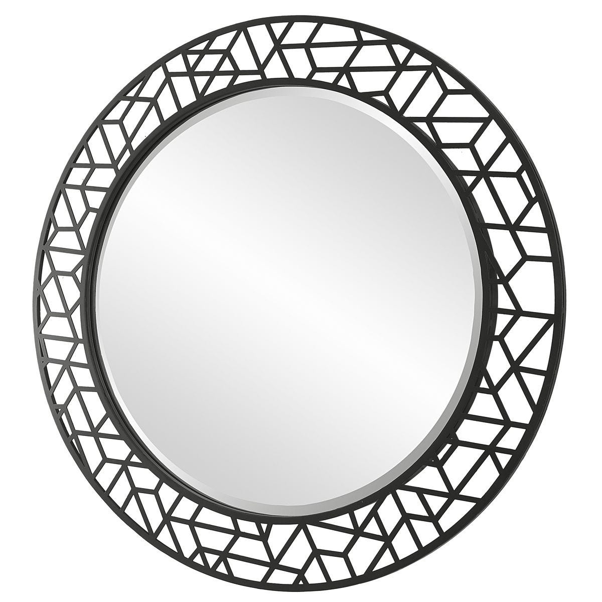 The Mosaic mirror displays intricate metalwork for a clean contemporary look finished in satin black. Mirror has a 1 1/4" bevel.