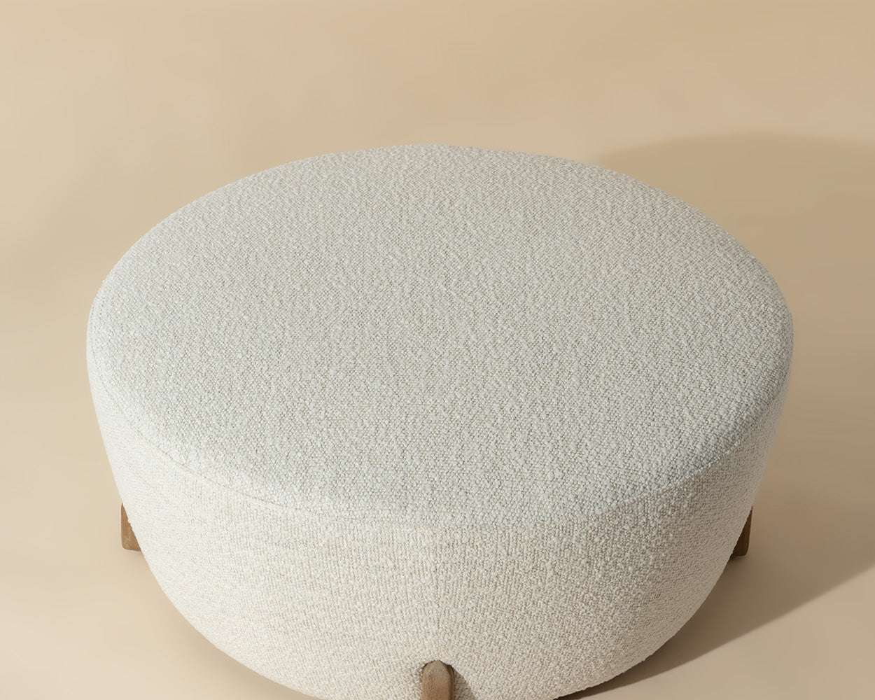Contemporary and stylish, the Cyan Ottoman is a versatile piece that will add comfort to any space. Generously upholstered in merino pearl performance fabric with natural birch wood legs. Performance fabric is moisture repellent, durable and easy to clean. As wood is an organic, porous material, these pieces will contain natural variation of texture and may also exhibit fine indentations and cracks. Wood pieces will also display a disparity of colour and grain, and visible knots and burls that add to the character of each piece.