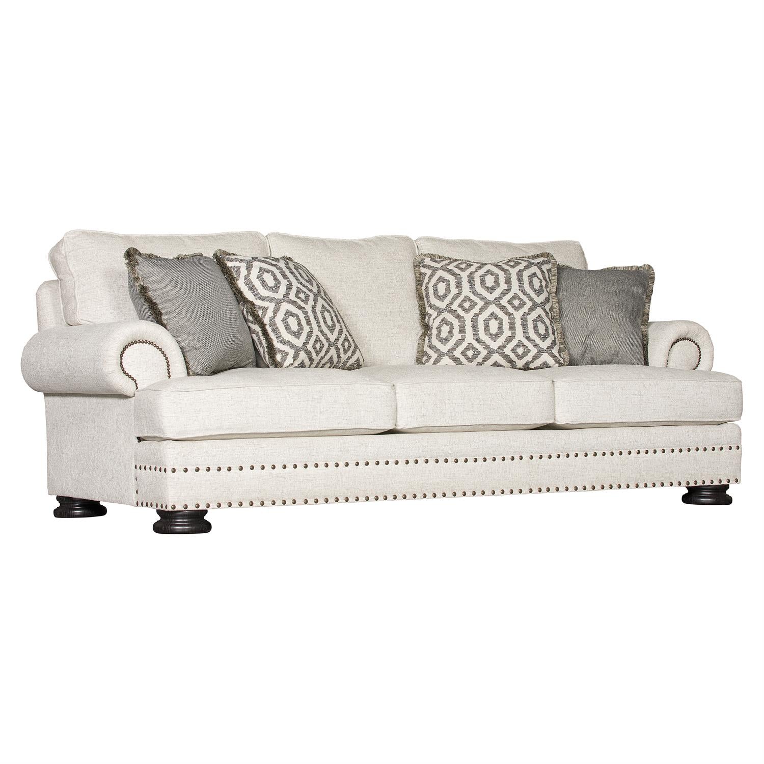 Traditional grandeur meets luxurious comfort in this sophisticated sofa. Four throw pillows.