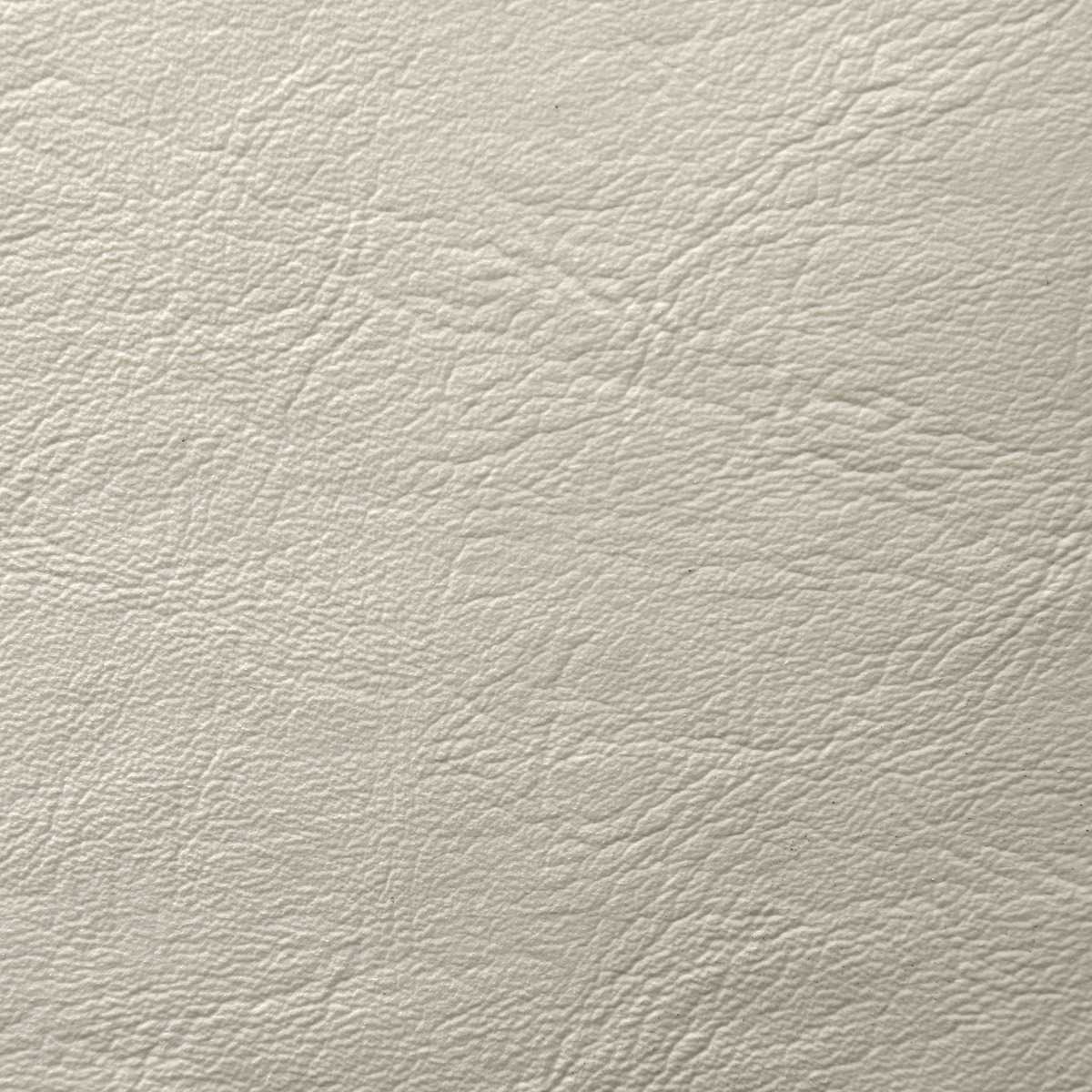 Sleek styling with a gently curved back, featuring soft faux leather in a cream white, with hand hammered polished nickel nail head trim. Birch wood frame is finished in a rich dark walnut stain with an antique bronze kick plate.