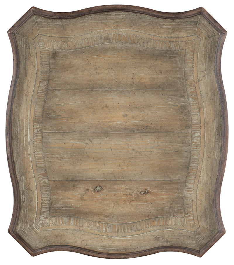 Old World charm and classic design elements like shaped and fluted legs are updated with a relaxed rustic finish with the look of natural wood bathed in sunshine in the Castella End Table. Crafted of Pecan, Quartered Walnut, Black Walnut, Ash and Maple Veneers, the table exudes a livable resort feeling. One drawer and one fixed shelf. Commanding attention in any space, the impressive scaling of the Castella Collection combines with classic design elements including scrolls, serpentine shapes, rope twist molding, acanthus leaf details and fleur-de-lis accents to create old world charm. Infused with emotion, the collection's exuberant scale and timeless motifs define its casually opulent style. Presented in an updated mid-tone brown finish with a beautiful patina, Castella offers Classic European design with an updated twist.