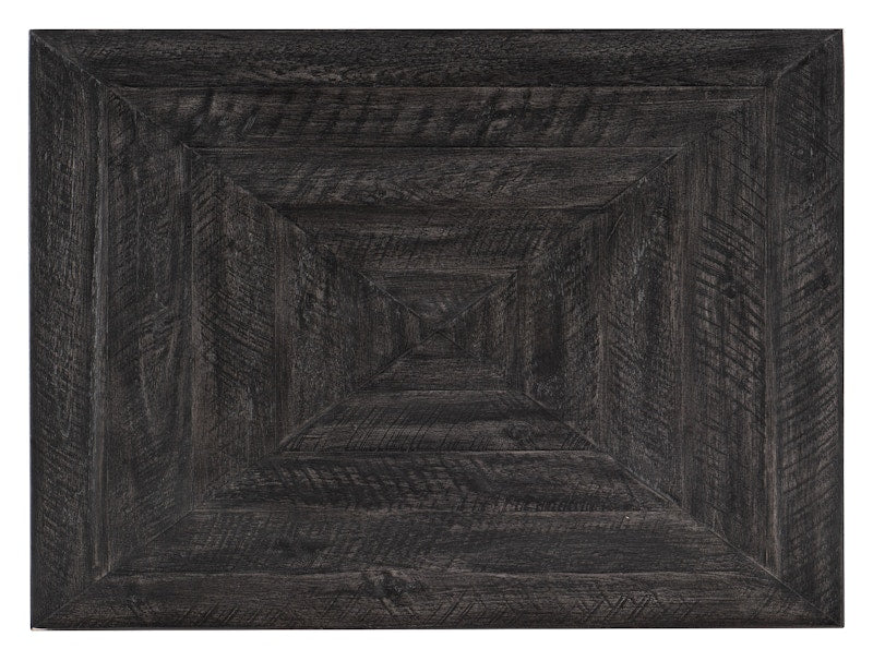 Casual rustic meets industrial chic in the St. Armand Rectangular End Table, combining an airy metal base and stretchers in a brushed metal finish with a top crafted of Acacia Solid Wood in a distressed black finish with a finger pull opening on the single drawer. Give your home a shot of style with our living room furniture. Make this room the perfect spot for conversation, entertaining or just relaxing.