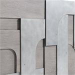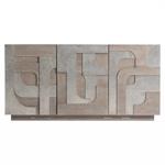 This buffet forges a new modern look with geometric overlays. Oak solids and veneers in Chai finish with exposed metal in Steel Dust finish