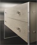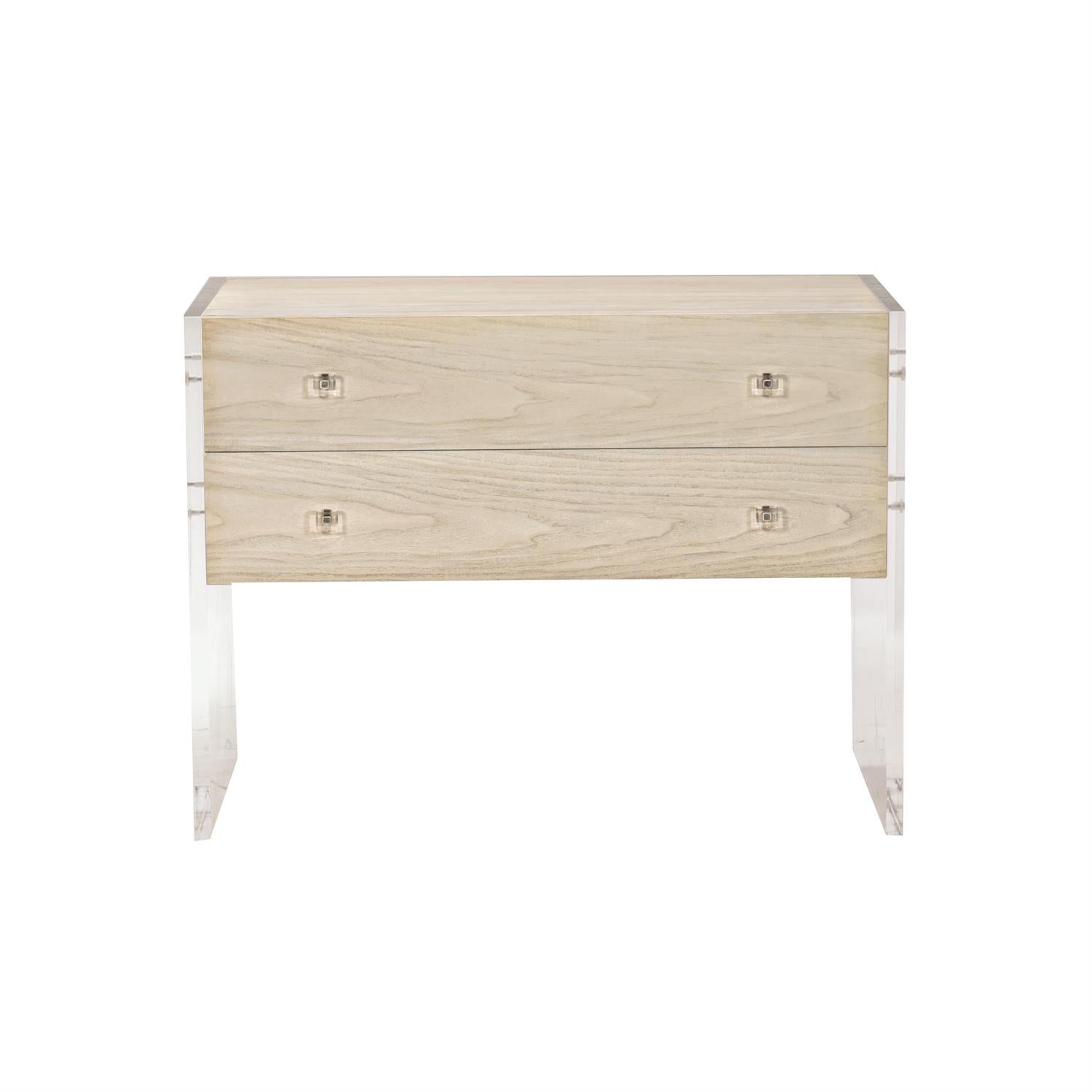 This bachelors chest creatively combines rustic bleached wood, sleek acrylic panels, and exposed fasteners for a captivating look. Bleached rustic figured walnut veneers in Bleached Walnut finish