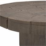 In this round cocktail table, a simple minimalist form combines with the beautiful organic texture of teak. Sliced solid teak wood top with teak base