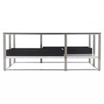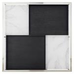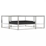 Combining glass, steel, oak and faux marble, this cocktail table pairs touches of glamour with a unique modern design. Lay-on tempered square glass top