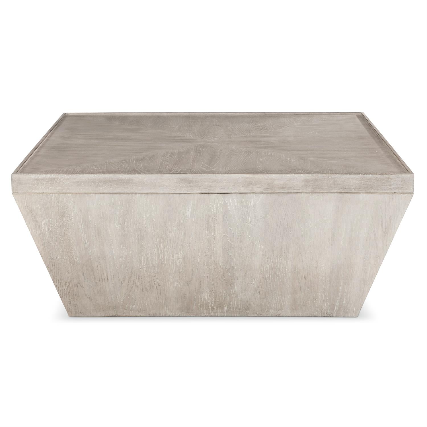 A truly unique piece, this modern cocktail table captivates with its inverted form and fancy face top. Flat cut white oak veneers