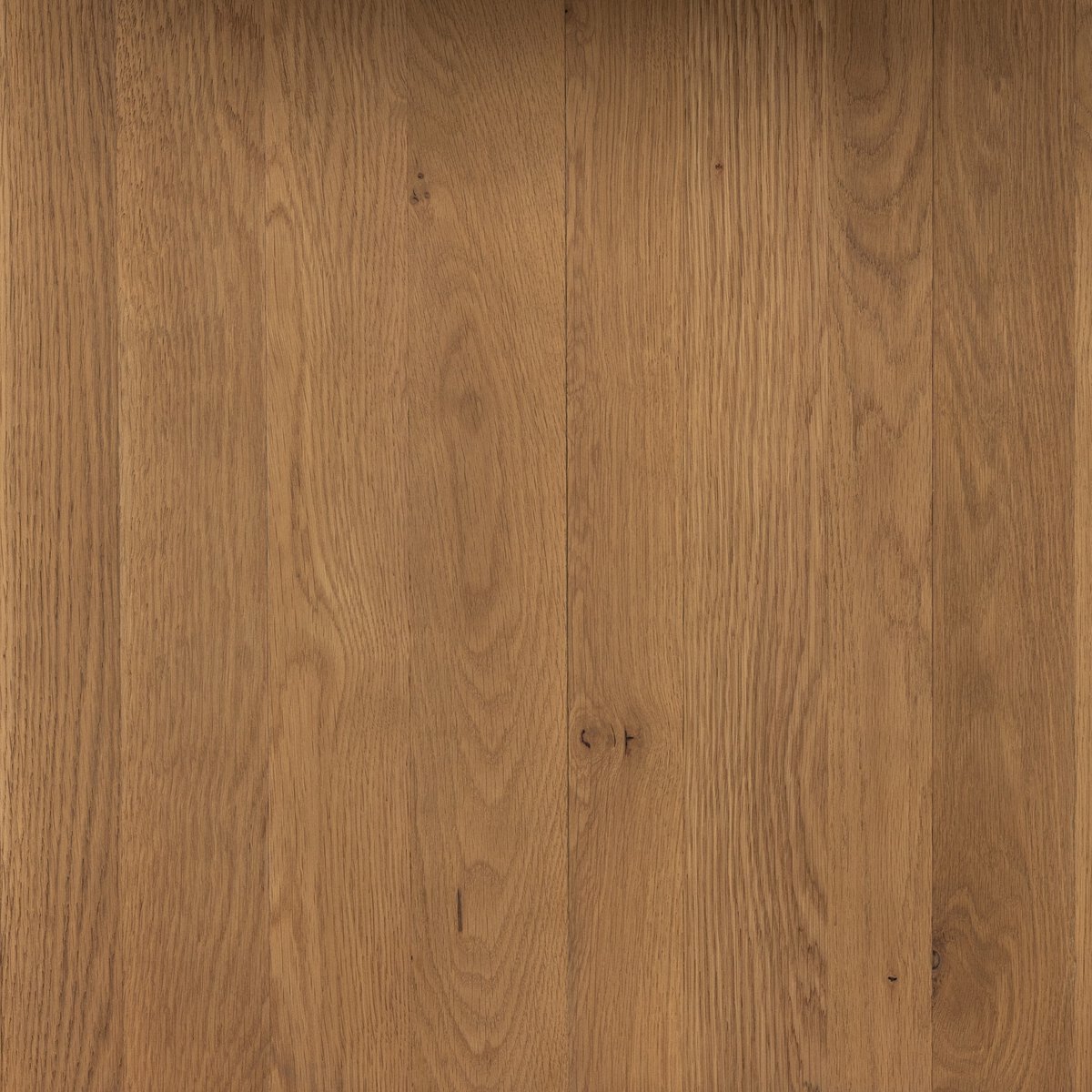 A shape-driven dining table made from thick-cut oak veneer features overscale proportions and half-moon shaping in a warm grey-brown finish. Option to pair with matching bench. Seats six comfortably.