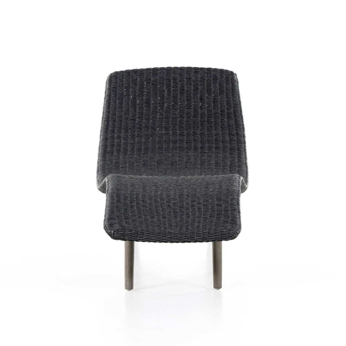 Strike a pose. Based off a vintage shape, all-weather wicker is subtly curved and set atop a minimal frame made of solid teak. A stylish statement piece and seating option for both indoors and out. Cover or store inside during inclement weather and when not in use.