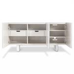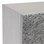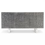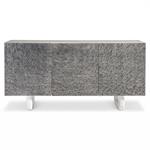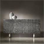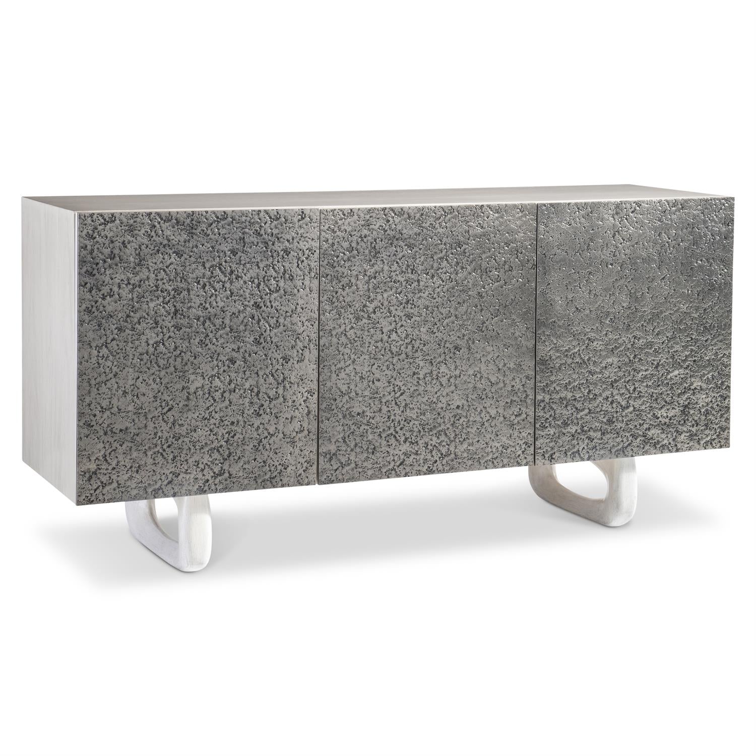 Textured cast aluminum crafts a modern rustic look on this buffet. Walnut wood case in Lutra finish atop cast resin legs in Lutra Faux Stone finish